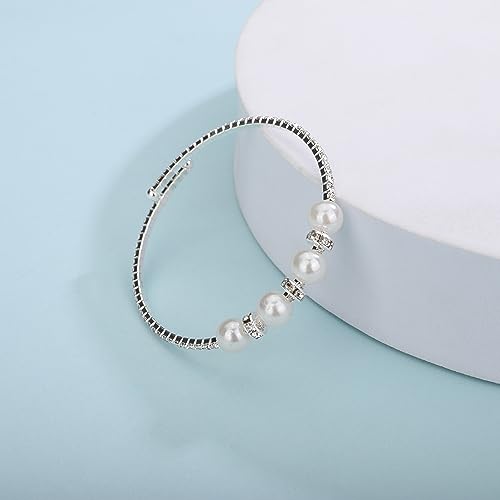 Why Choose YERTTER elementary Vintage Open Cuff Pearl Crystal Bangle Bracelet Rhinestone Pearl Bangle Bracelet Gift for Women Brides for Prom Party Wedding Dating?