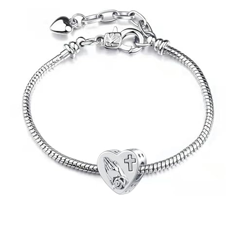 NARTGO Praying Hands Cross Memorial Charm for Women Compatible with Pandora Bracelets
