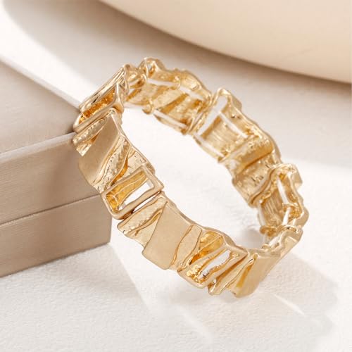 Metal type: ZincClasp type: Lobster ClawChain type: Link ChainGem type: No gemstoneItem type name: Stretch BraceletsGold Chunky Bangle Bracelets: Gold chunky bangle bracelet for a fun take on a retro style, rectangle, and stretchable elastic bangleStretchy Link Chain Bracelet: You'll simply love the extra style they bring to any outfit. The bracelet are solid and sturdy in structure, and they are serviceable, with exquisite workmanship, able to bring you a pleasant wearing experienceSize: Our stretch bangle bracelets measure 2.72 inches in diameter before stretching. Stretchable bracelets comfortably fit most sizes small to large wristsTimeless Elegance: Crafted with meticulous attention to detail, our gold bracelet boasts timeless elegance. The classical stretchy design adds a touch of sophistication, making it a statement piece that stands out with graceApplicable Occasion: You can wear these gold bracelets to attend any occasion such as dinner, party, festival, celebration, prom, dancing, ball, engagement, wedding, birthday, Christmas, formal events, etc Perfect for everyday use. premium materials and excellent craftsmanship ensure long-lasting durability.