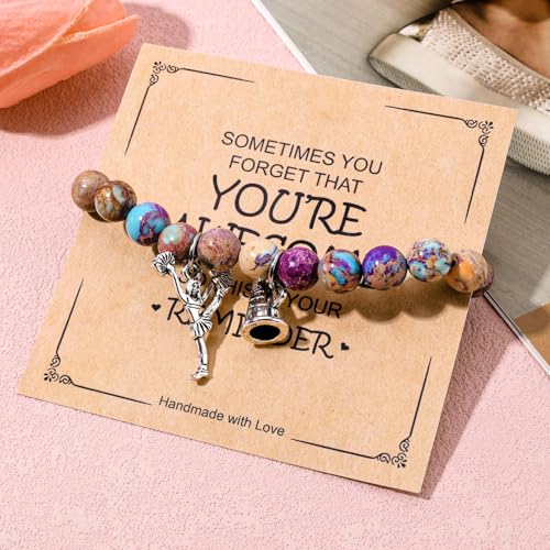 sizzling ! Cheer Bracelet, Imperial Stone Cheerleading Bracelet with Encouragement Card Charming Cheerleader Gifts Elegant Smooth Cheer Stuff with Cheerleader Jewelry Pendant