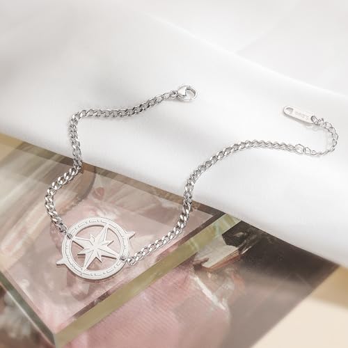 • [Adjustable & cozy Fit] The bracelet features an adjustable chain (6.3” + 1.18” extender), ensuring a outstanding fit for any wrist size. The compass pendant is lightweight yet eye-catching for all-day wear