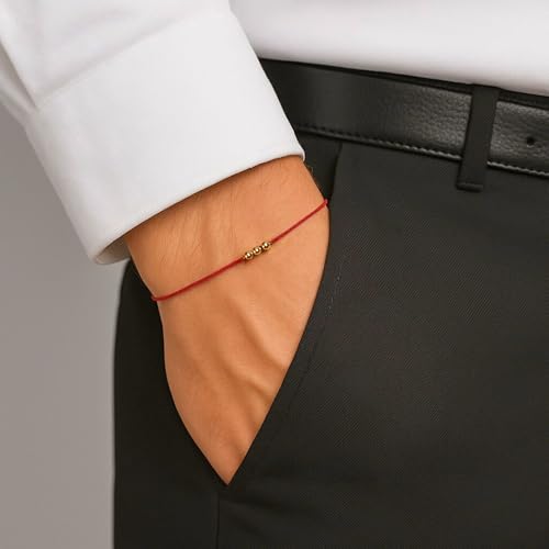 14K Gold Bead Red String Bracelet - Unisex Kabbalah Talisman for Luck & Protection - Thin, Minimalist Jewelry with Clasp