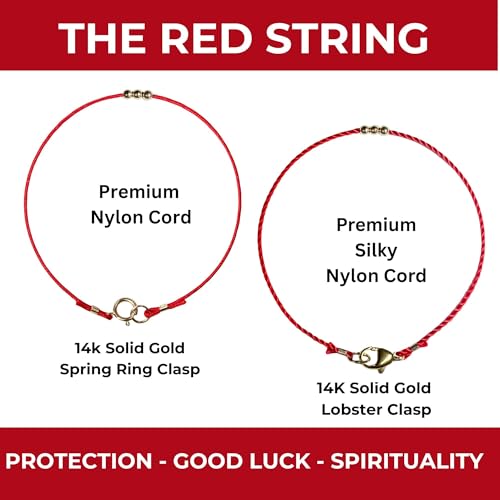 Material: NylonMetal type: Yellow GoldClasp type: Spring RingChain type: Cord ChainGem type: No gemstoneItem type name: Strand BraceletsIncluded in Purchase: Receive one handcrafted red string bracelet with a secure 14K solid gold clasp, thoughtfully packaged with a symbolic color meaning card.Premium Quality Materials: Crafted with durable nylon or silky nylon cords, designed to be water-resistant and colorfast, paired with high-quality 14K solid gold for lasting elegance.Solid Gold Details: Features triple ball beads and a sturdy 14K solid gold clasp, ensuring a secure, cushy fit while maintaining timeless beauty.Symbolic Meaning: Inspired by Kabbalah traditions, this bracelet symbolizes protection, good luck, and infinite love, making it a meaningful gift for any occasion.Handmade with Care: Lovingly handcrafted in the USA with strict quality control, this versatile unisex design is ideal for men, women, couples, and friends, perfect for Valentine's Day or any special occasion. Perfect for everyday use. premium materials and excellent craftsmanship ensure long-lasting durability.