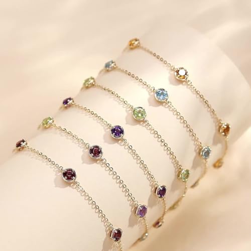 More information about 14K Solid Yellow Gold 1 cttw Natural Gemstone Dainty Delicate Petite Station Bracelet Birthstone Fine Jewelry Anniversary Christmas Holiday Gifts For Women, 6+1.2 Inch