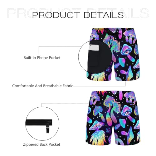 Fabric type: 100% PolyesterCare instructions: Machine WashClosure type: DrawstringFit type: Stretch★【Quick Dry Stretch Fabric】: TheNavy Blue 80S mens swimming trunks are made of polyester and spandex, soft, skin-friendly, with great quick-dry, breathable, lightweight functions. Our men's swim trunks never fade and do not peel, with fabric that stretches in all directions, allowing you to move freely without any restrictions.★【Elastic Waist Drawstring】: With an elastic waistband and adjustable drawstring, our Trippy Mushroom swim trunks offer an easy and customizable fit. The Funny Neon swimming trunks for men will never sag or slip down, you can enjoy a plush experience all day.★【2-in-1 Compression Liner】: Our mens bathing suit come with a high-quality compression liner that is more comfortable than traditional fishnet mesh liners. The inner stretch lining is comfortable skin-friendly, provides strong support, and protects the legs from friction and sand. It also prevents the shorts from sticking to the skin when soaked.★【4 Secure Pockets】: The mens board shorts have two side pockets, one back pocket with zippers, and one built-in pocket on the liner, providing a secure place to store personal belongings such as wallet, key, cell phone or other small items. You can enjoy your water activities without worrying about losing your essentials.★【Perfect Length】: Our swim trunks men are designed with a 5.5 inseam, falling at about mid-thigh. These swim suit mens shorts are perfect for swimming, surfing, sailing, kayaking, cruising, beach party, pool or water parks, water sports, vacations, running, gym, casual, etc. The board shorts are available in sizes S to 3XL. Please check your size with our SIZE CHART before you buy it. Perfect for everyday use. excellent materials and excellent craftsmanship ensure long-lasting durability.