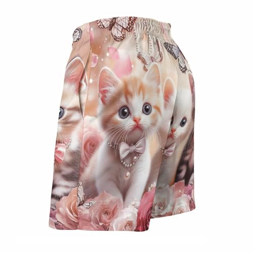 Cute Cat Kitty Men's Swim Trunks speedy Dry Board Shorts Hawaiian Beach Shorts With Pocket