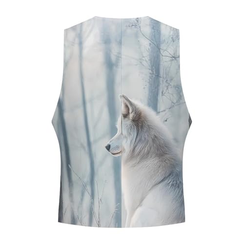 Cool Wolf Majestic Forests Men's Suit Vests Business Formal Dress Vest V-Neck Waistcoat for Wedding Casual