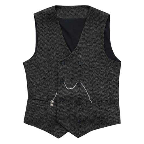 NATHGAM Men's Business Casual Suit Vest Double Breasted V Neck Waistcoat Slim Fit Herringbone Tuxedo Vest for Wedding Party