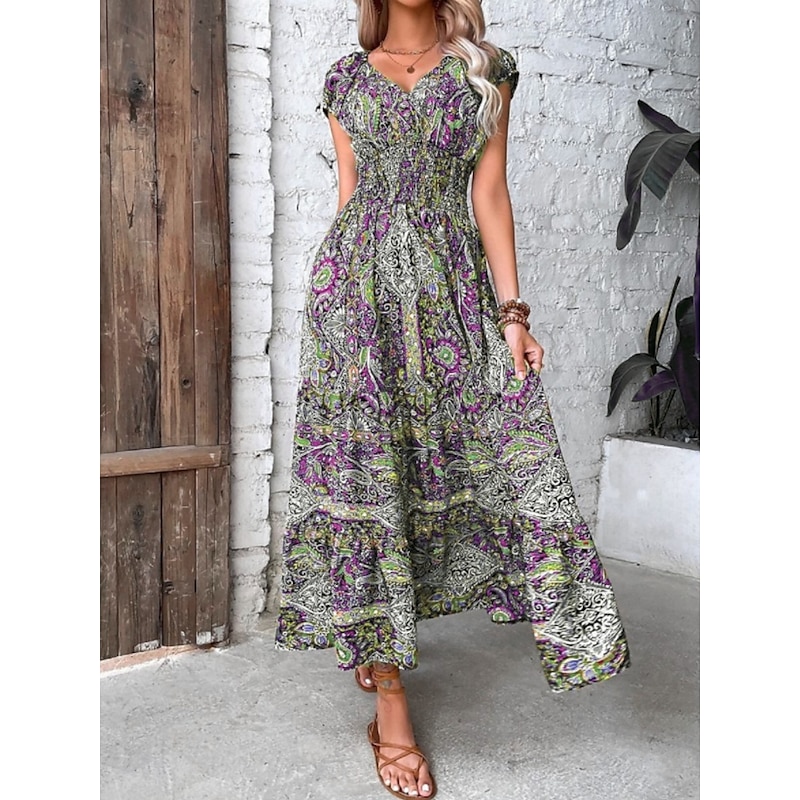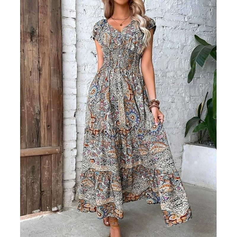 Why Choose Women's Maxi Dress Casual Dress Swing Dress A Line Dress Boho Dress Bohemia Ethnic Casual Daily Regular Fit Paisley Short Sleeve V Neck Blue Summer Spring?