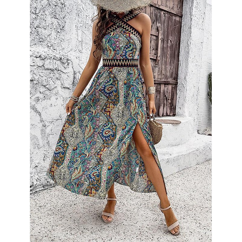 Women's EU / US Size Long Dress Maxi Dress Sheath Dress Swing Dress Sundress Boho Dress Elegant Bohemia Vintage Cold Shoulder Vacation Party Valentine's Day Slim 3D Print Abstract Multicolor