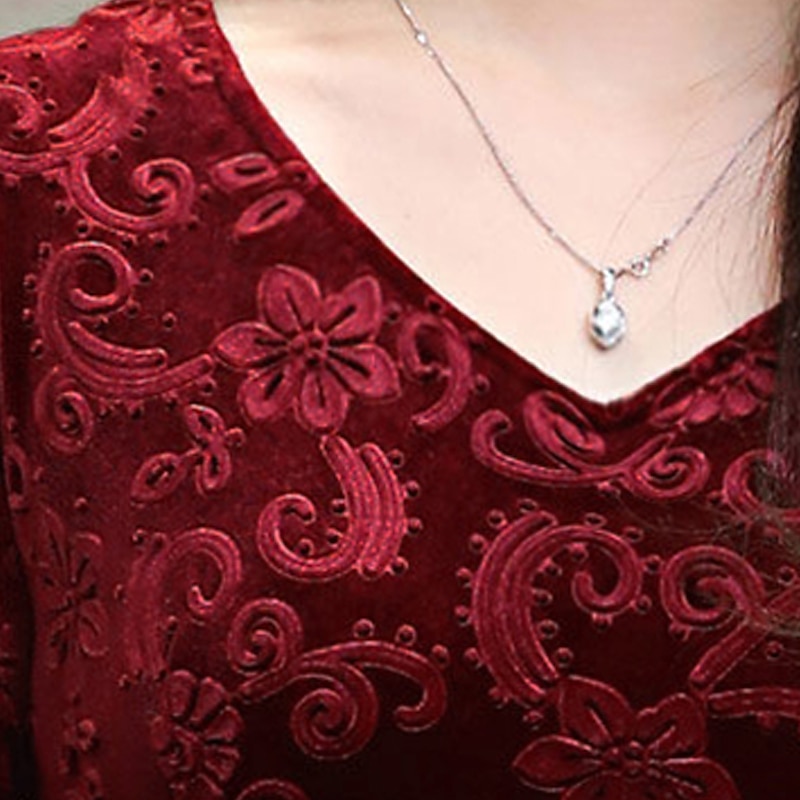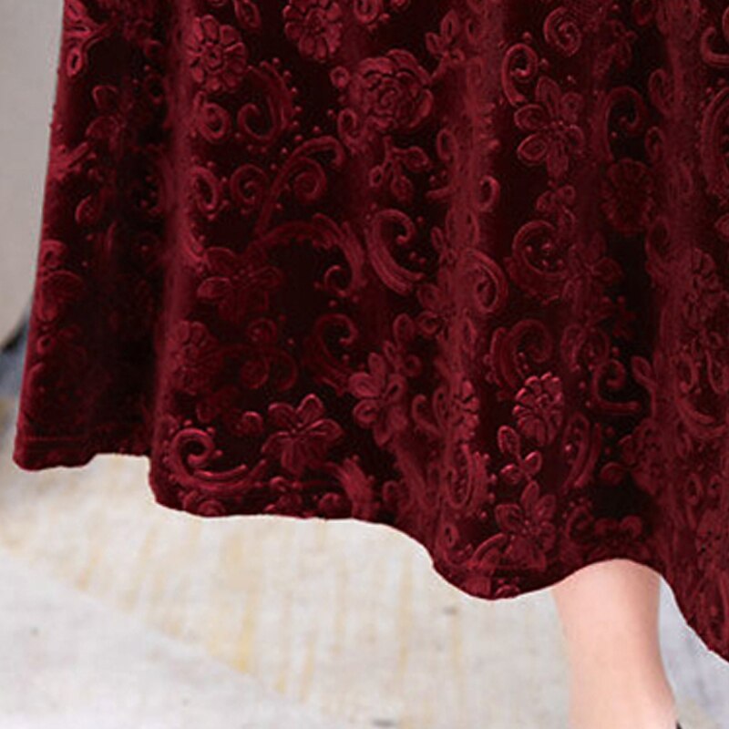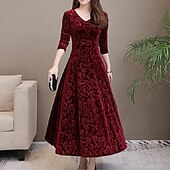 More information about Women's Midi Dress Velvet Dress Party Dress Swing Dress Emerald Green Dress Elegant Fashion Romantic Winter Dress Vacation Wedding Guest Slim Floral Long Sleeve V Neck Black Red Green Spring Fall
