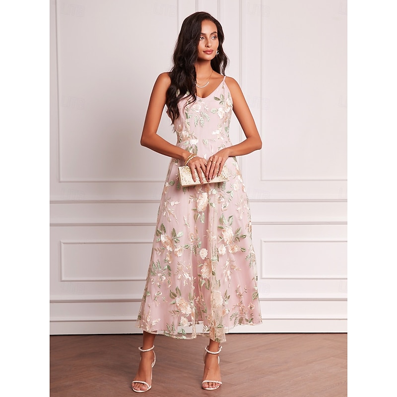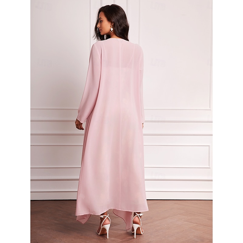 Women's Wedding Guest Dress Set Maxi Dress Chiffon Cardigan Embroidered Date Vacation Elegant V Neck Long Sleeve Pink Color Spring Summer Fall