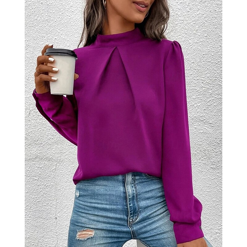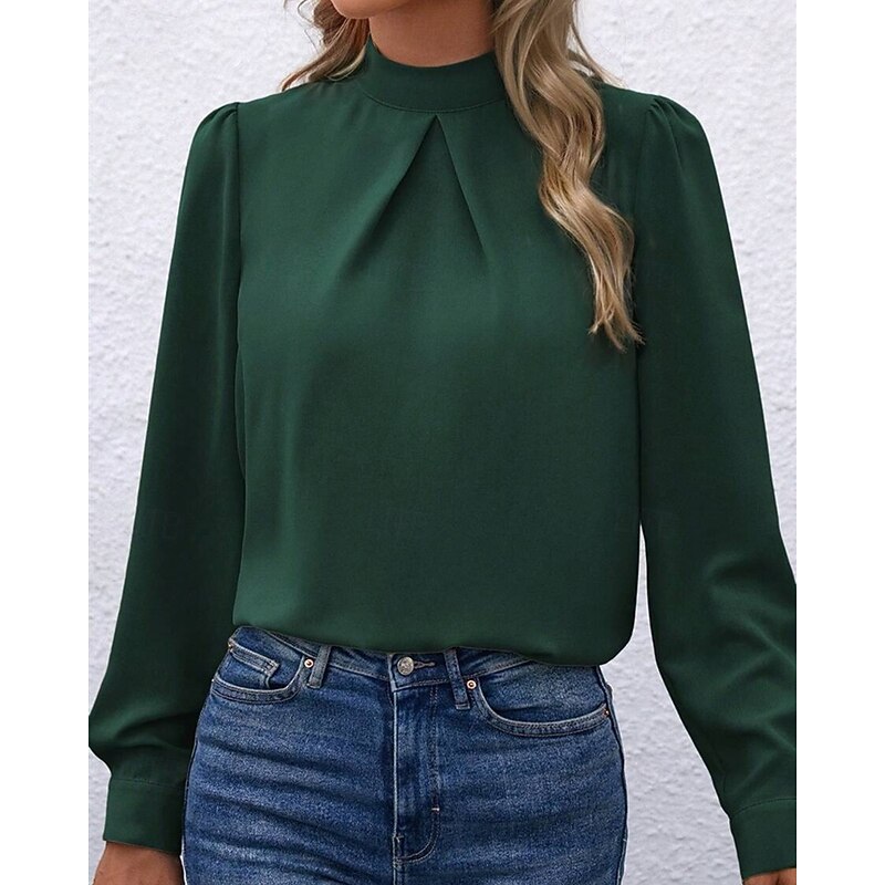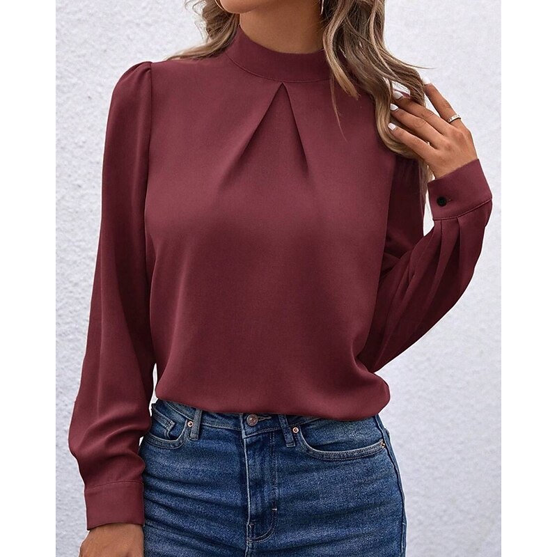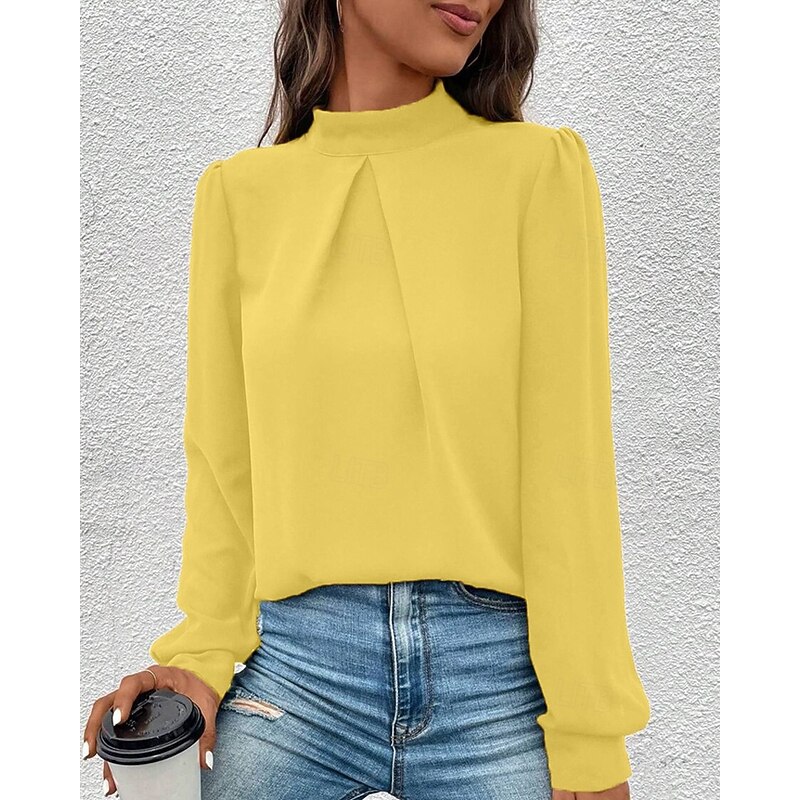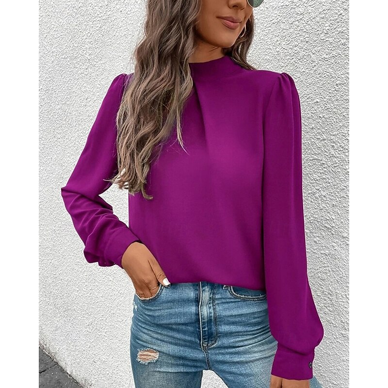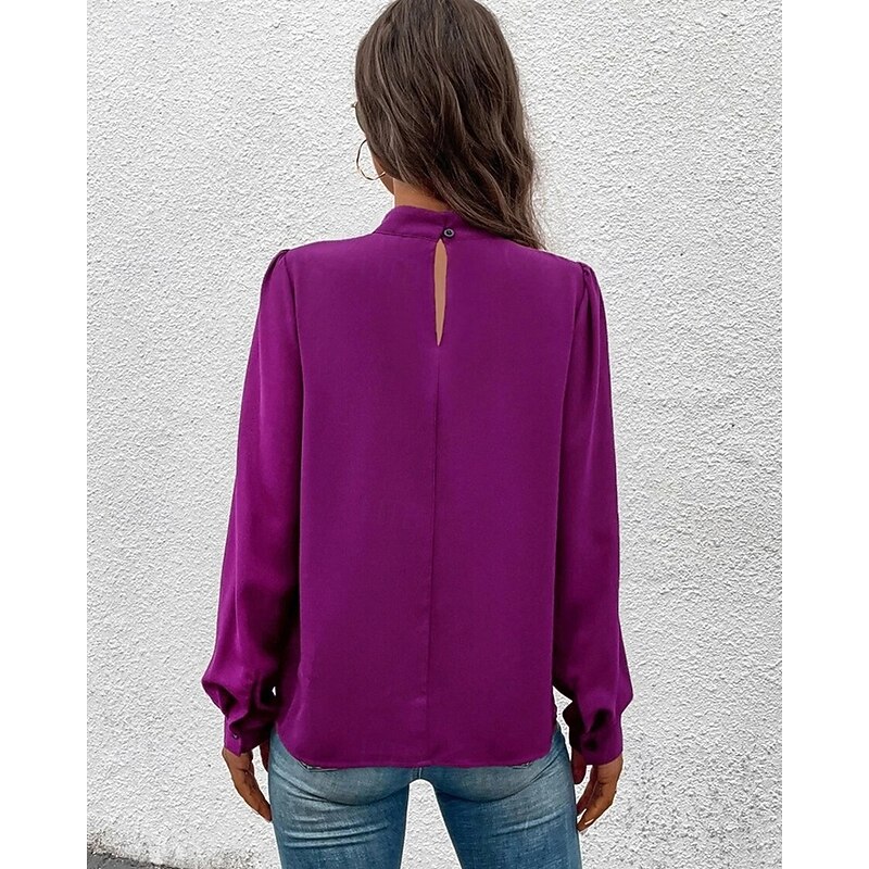 More information about Women's Shirt Elegant Dressy Satin Solid Color sleek Casual Long Sleeve High Neck Regular Tops Daily Going out Black Yellow Light Green Red Purple Spring Fall