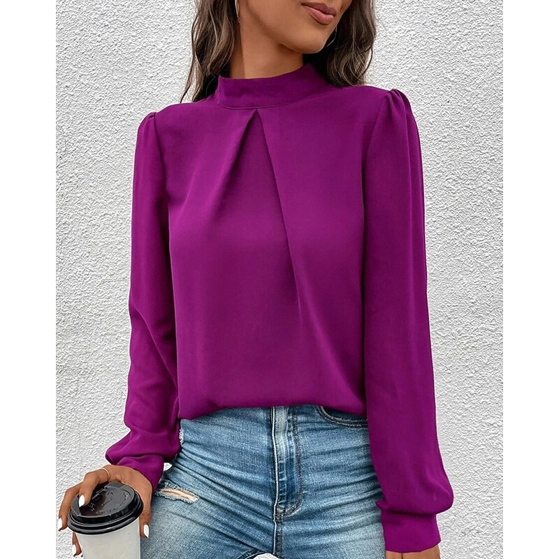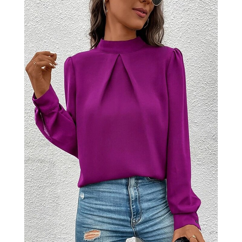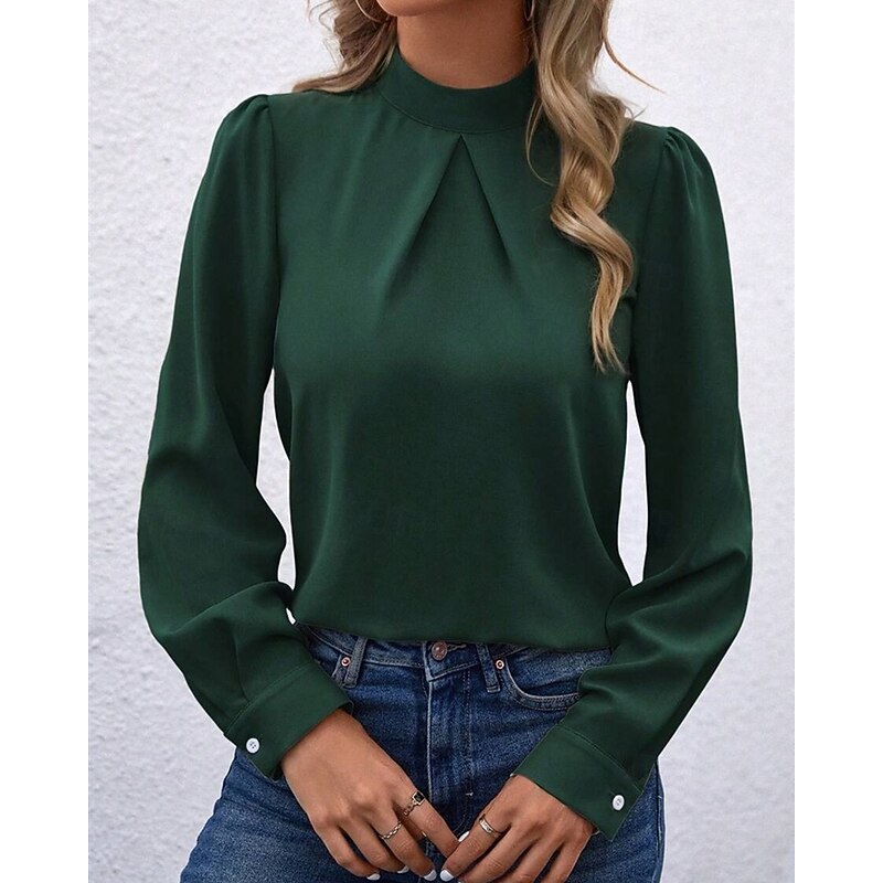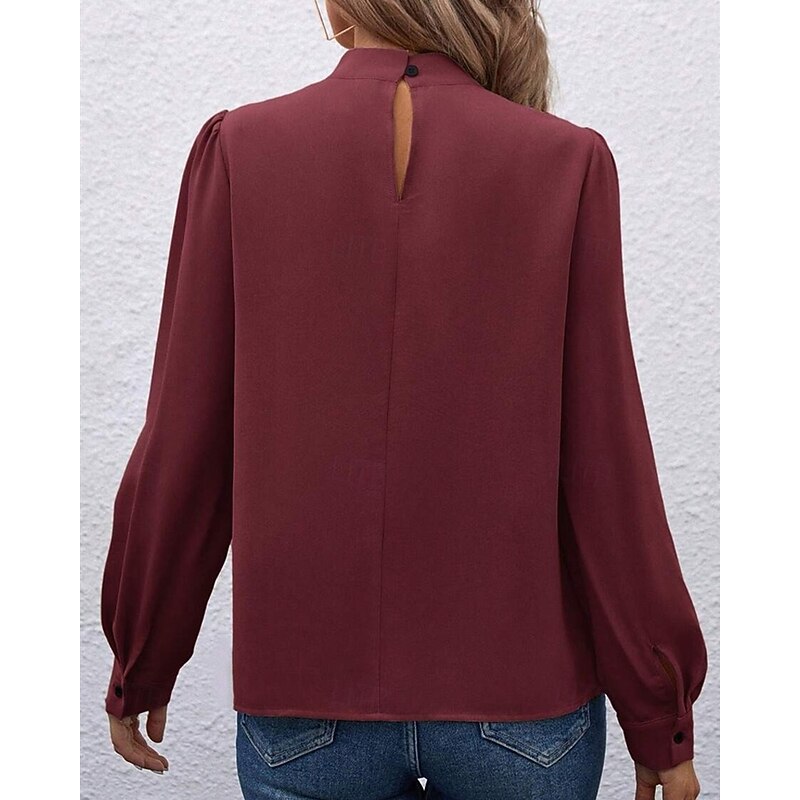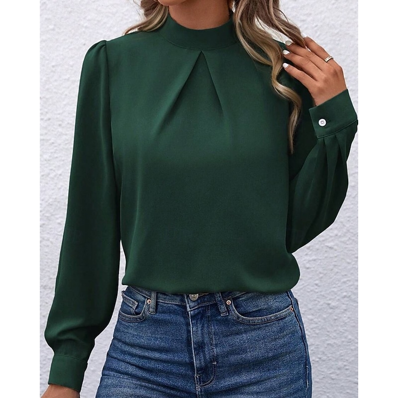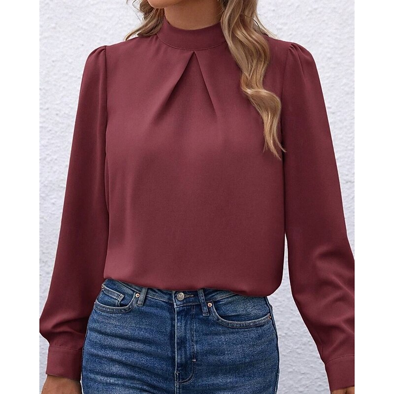 More information about Women's Shirt Elegant Dressy Satin Solid Color sleek Casual Long Sleeve High Neck Regular Tops Daily Going out Black Yellow Light Green Red Purple Spring Fall