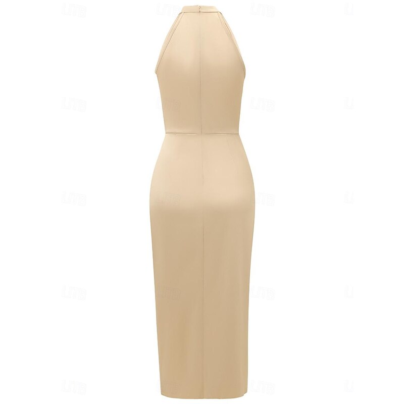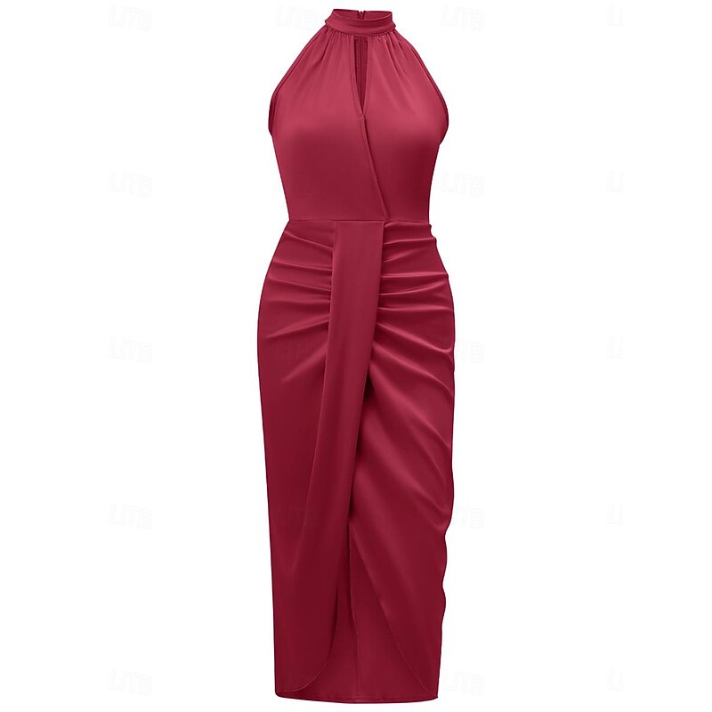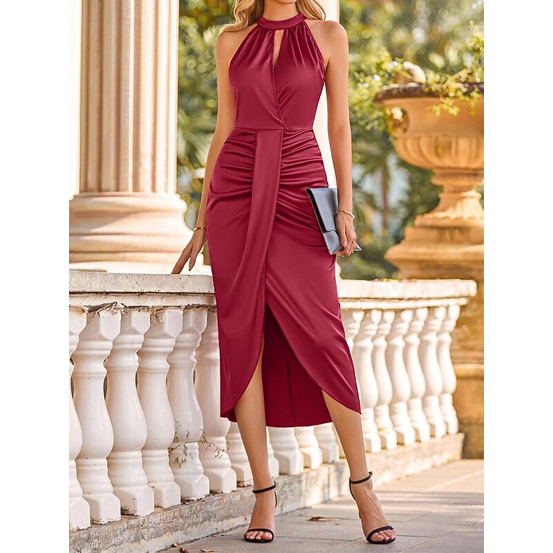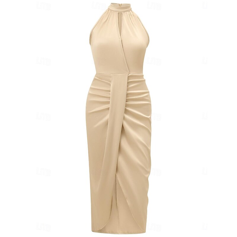 sizzling ! Women's Casual Dress Midi Dress Ruched Wedding Party Elegant Streetwear Halter Neck Sleeveless Champagne Wine Green Color