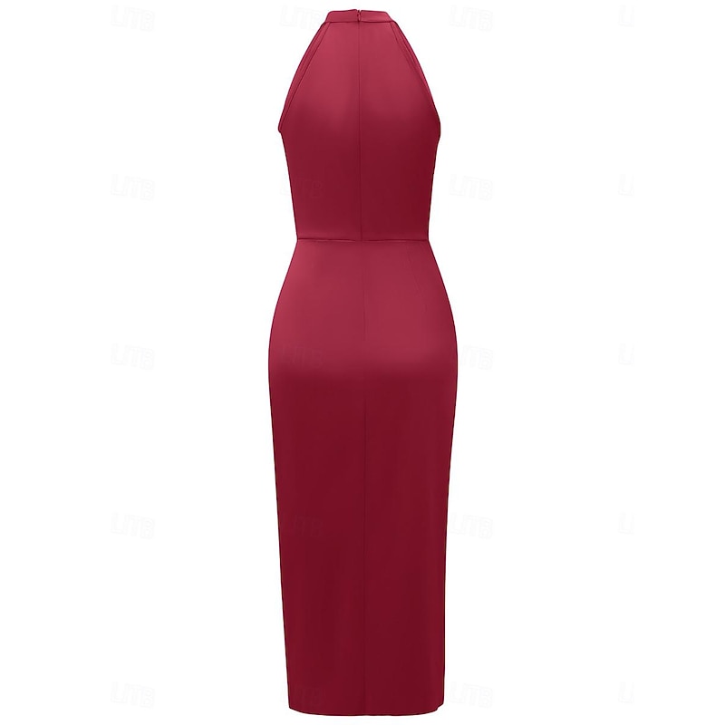 More information about Women's Casual Dress Midi Dress Ruched Wedding Party Elegant Streetwear Halter Neck Sleeveless Champagne Wine Green Color