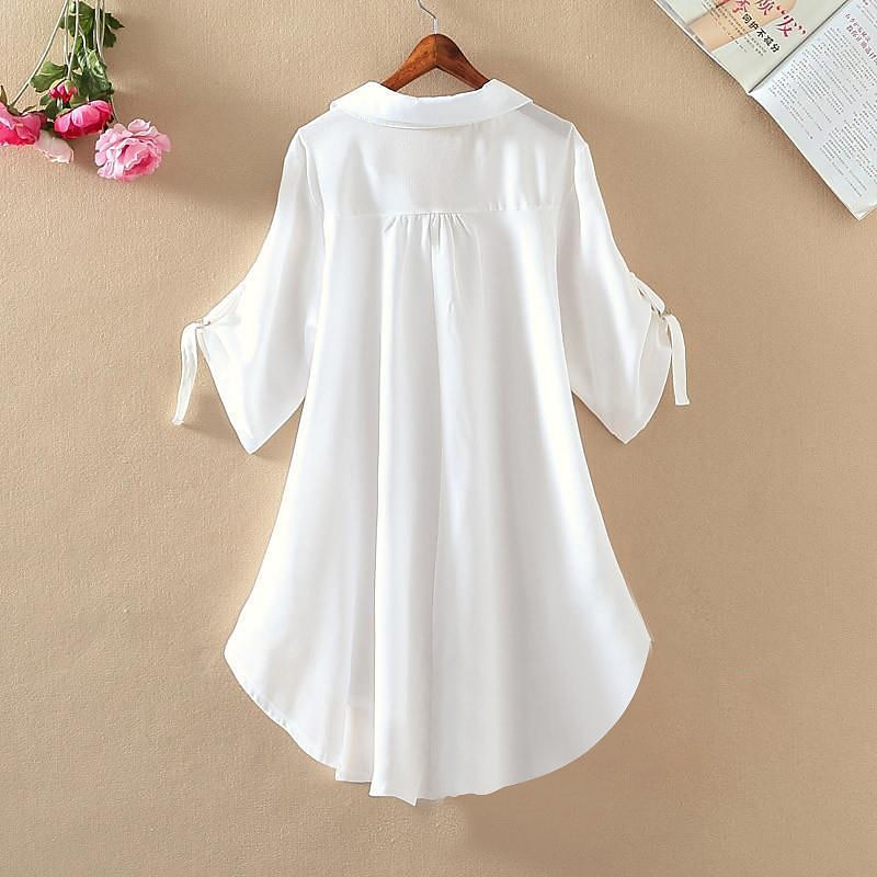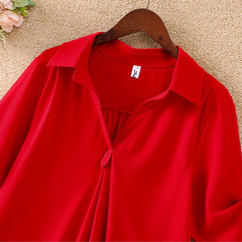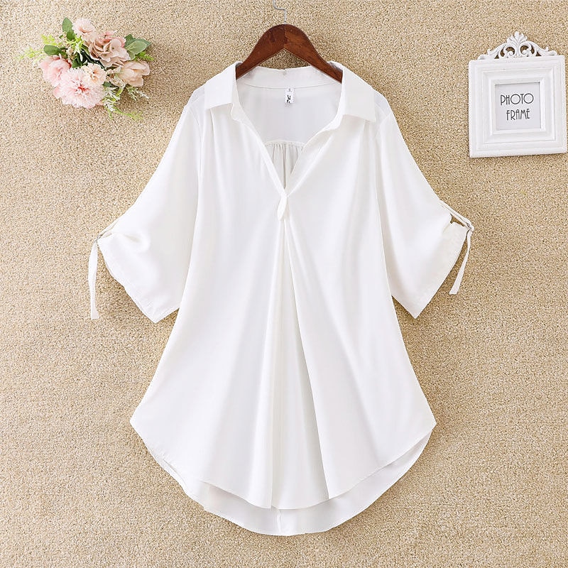 Highlights [Fabric] : Crafted from high-quality polyester, this women's blouse offers a smooth and lightweight feel with a subtle sheen, ensuring comfort and easy movement throughout the day. The material provides a gentle drape, enhancing the overall luxurious look. [Fit] : The blouse has a regular fit, offering a relaxed silhouette that is both comfortable and flattering. This makes it suitable for a variety of body types, providing freedom of movement without compromising on style. [Design Highlights] : Featuring a classic shirt collar and half sleeves, this blouse embodies a chic and sophisticated vibe. The sleeves are adorned with elegant tie accents for adjustable styling, while the high-low hem design introduces a modern twist, perfect for creating a sophisticated silhouette. [Occasions] : Ideal for daily wear, work settings, and weekend outings, this blouse seamlessly transitions from casual streetwear to more formal occasions. Its versatility makes it a staple piece for any fashion-conscious wardrobe, suitable for spring and fall. [Size Range] : Available in a wide range of sizes from L to 5XL, this blouse accommodates a diverse range of body shapes and offers suggestions to size up for the perfect fit. Its solid color design and micro-elasticity further enhance its adaptability and comfort. Perfect for everyday use. excellent materials and excellent craftsmanship ensure long-lasting durability.