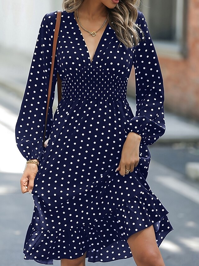 Why Choose Women's Mini Dress Casual Dress A Line Dress present-day Casual Vacation Daily Regular Fit Polka Dot Long Sleeve V Neck Navy Blue Green Spring Fall?