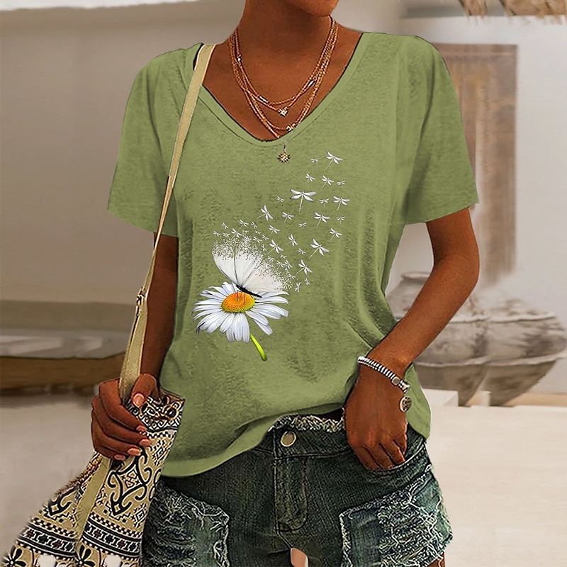 More information about Women's T Shirt Butterfly Dandelion Basic Short Sleeve V Neck Regular Tops Weekend Print Black Pink Blue Purple Green Summer