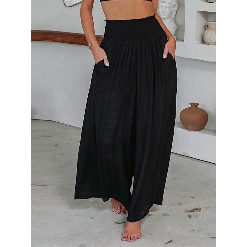 Highlights [Fabric] : These women's wide-leg pants are crafted from high-quality polyester, offering a micro-elastic texture that ensures breathability and comfort throughout fall and winter. The material's subtle texture delivers a soft, relaxing feel, perfect for any casual outing. [Fit] : Designed with a high waist and a regular fit, these pants boast a modern wide-leg cut that provides an effortlessly chic silhouette. The full-length design elongates the legs, contributing to a sleek and sophisticated appearance. [Design Highlights] : These pants feature a high cut with an elastic waistband for a secure and flattering fit. Practical side pockets add a layer of functionality, making these trousers both stylish and convenient. The plain pattern and clean lines make them an easy match for various tops and accessories. [Occasions] : Ideal for streetwear, holidays, daily wear, or lounging at home, these pants bridge the gap between casual and stylish. Whether you're stepping out for a leisurely day out or enjoying a relaxing weekend at home, these pants are a versatile wardrobe staple. [Size Range] : Available in sizes S, M, L, and XL, these pants cater to a range of body types, promising a comfortable and flattering fit for everyone. Perfect for everyday use. supreme materials and excellent craftsmanship ensure long-lasting durability.