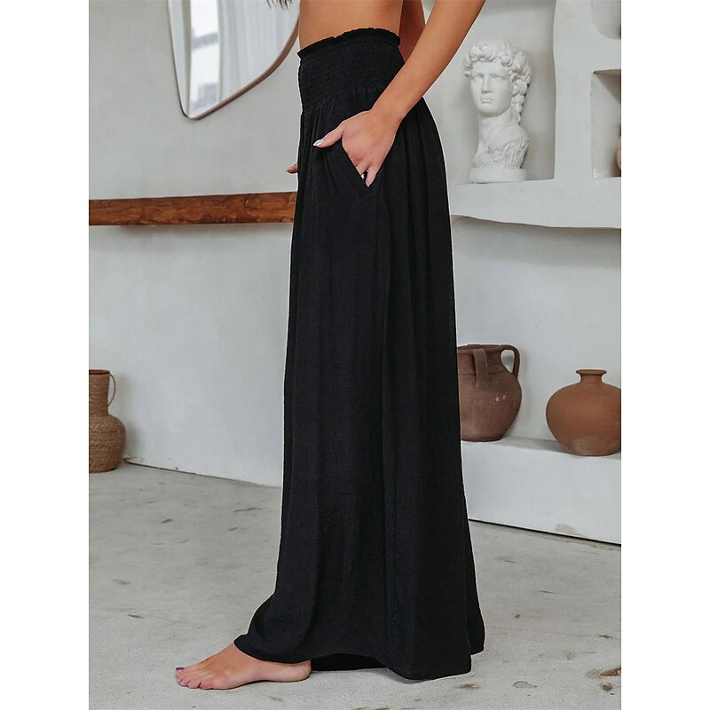 Women's Wide Leg Pants Trousers Vacation elementary Casual Full Length High Waist Plain Pocket Elastic Waist High Cut Comfort Breathability gentle Micro-elastic Home Street Daily Black Brick red Fall Winter