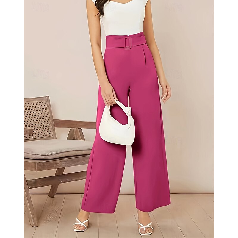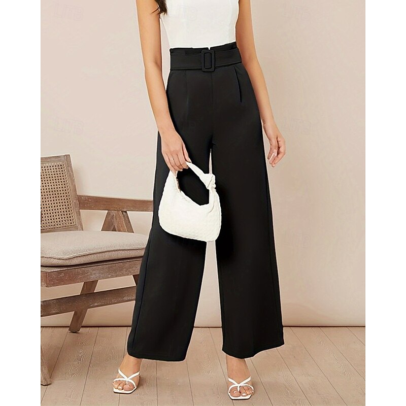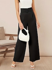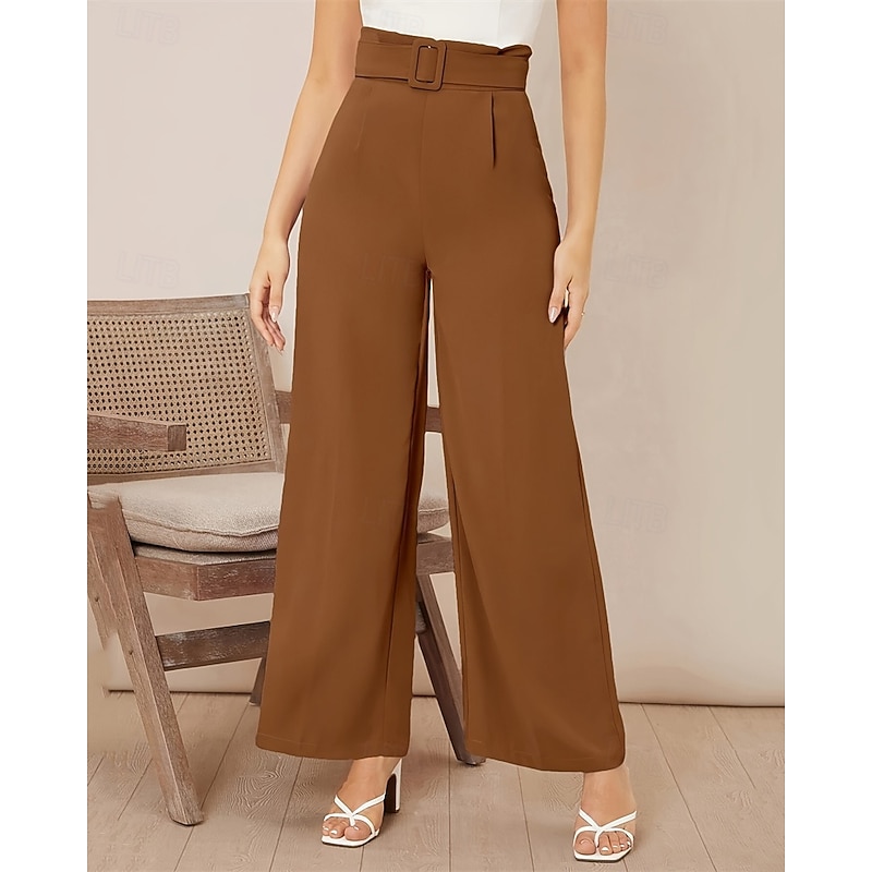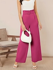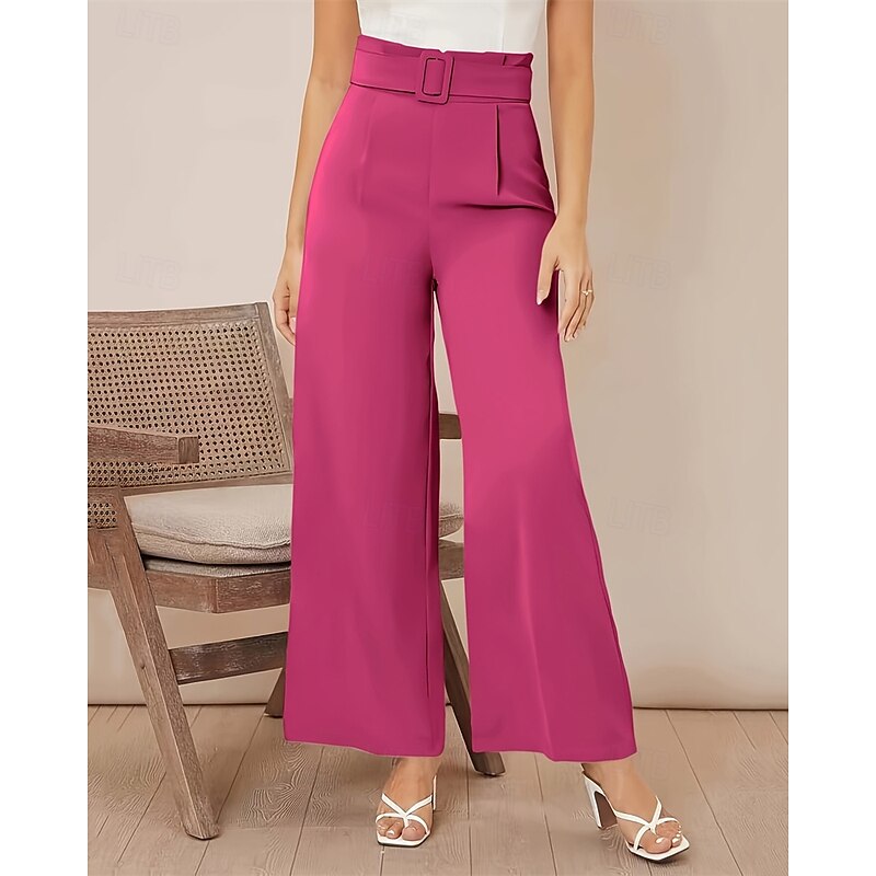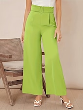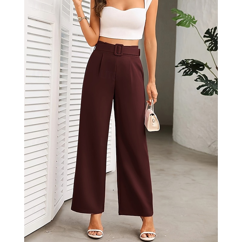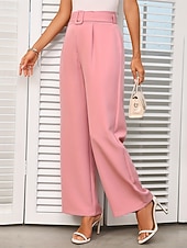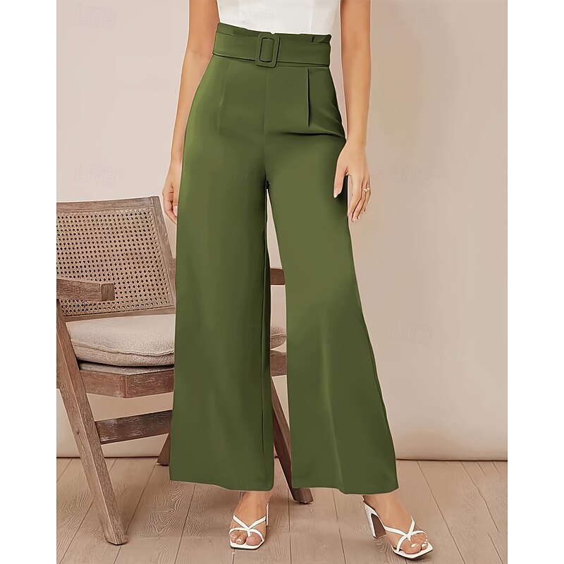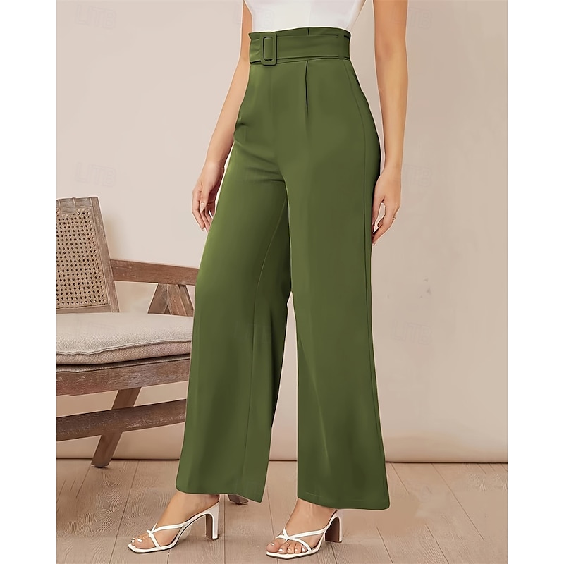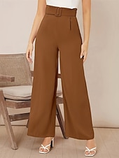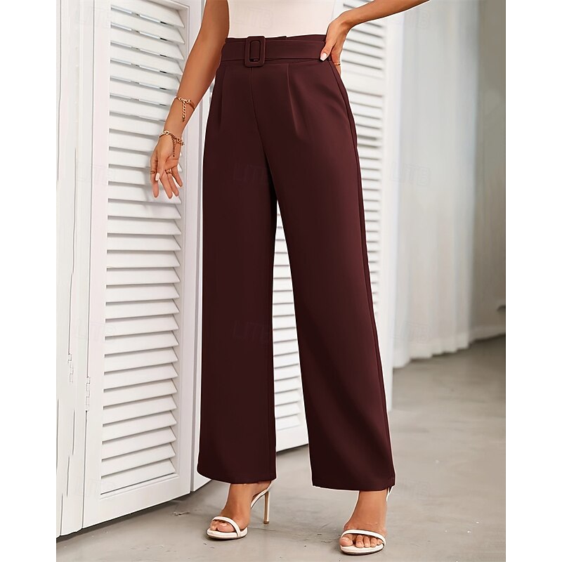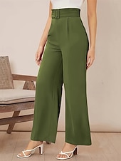More information about Women's Dress Pants Wide Leg Pants Trousers Fashion Streetwear Full Length High Waist Plain Breathability plush Micro-elastic Business Daily Wear Dark Brown Black Light Green Pink Summer Spring