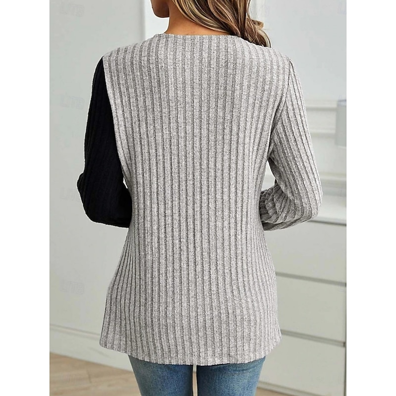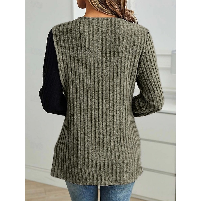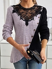 More information about Women's Blouse Solid Color Elegant sleek Basic Long Sleeve Crew Neck Regular Tops Daily Lace Patchwork Army Green Light Purple Light Grey Spring Fall Winter