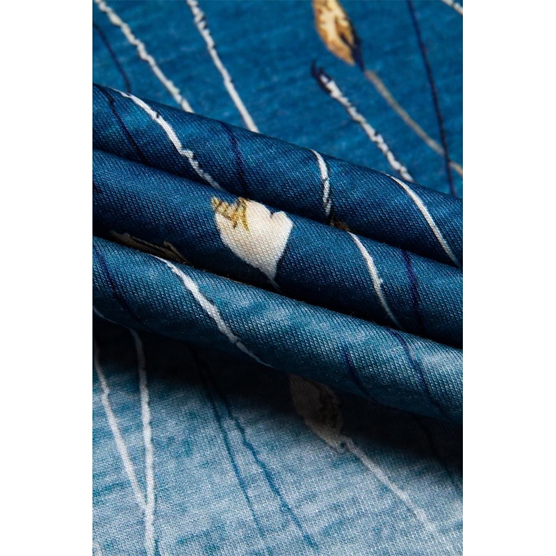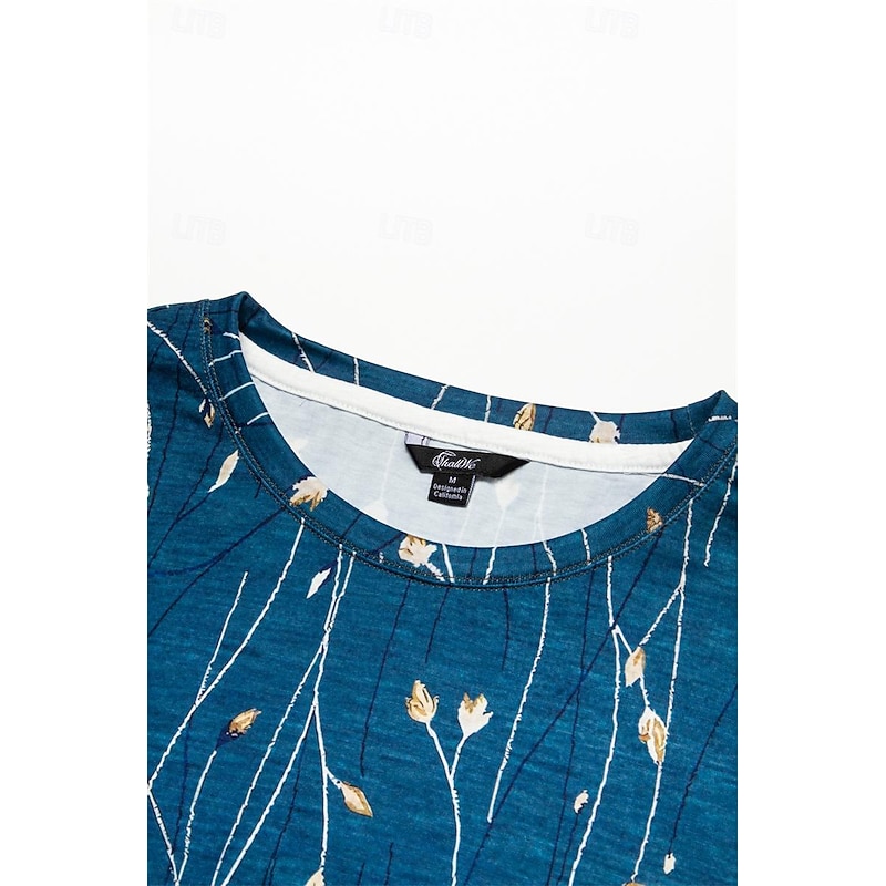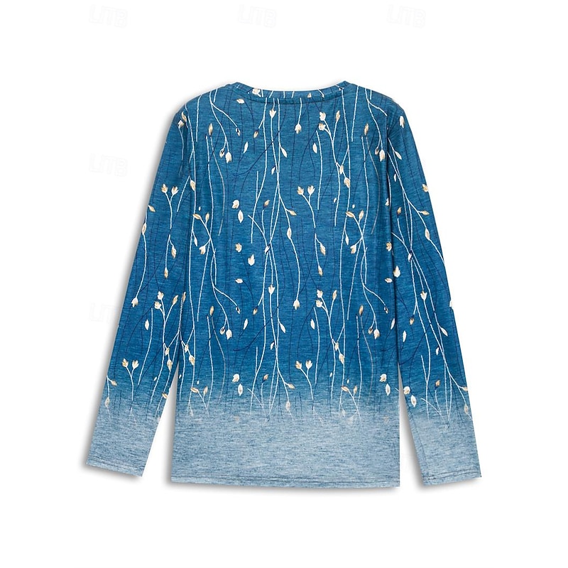 Highlights [Fabric] : Crafted from a breathable blend of polyester, this women's T-shirt offers a soft, comfortable fit with micro-elasticity, ensuring ease of movement and a flattering drape. Its smooth texture enhances the overall wearing experience, making it an ideal choice for fall and winter wear. [Fit] : This T-shirt features a regular fit that comfortably aligns with the body's natural curves without being overly tight. The long sleeves and enduring round neckline add to its versatile appeal, making it suitable for a variety of body types and occasions. [Design Highlights] : The T-shirt showcases an elegant floral print with delicate dandelion and abstract motifs in calming shades of blue, beige, and white. These intricate patterns add a touch of sophistication and femininity, making it a standout piece in any wardrobe. [Occasions] : Perfect for holiday getaways, weekend outings, or casual gatherings, this T-shirt transitions effortlessly from a relaxed daytime look to a more polished evening ensemble. Pair it with jeans for a casual day out or tuck it into a skirt for a more refined appearance. [Size Availability] : Available in a range of sizes including S, M, L, XL, and 2XL, this T-shirt accommodates various body types and ensures a perfect fit for everyone. Enjoy the versatility and style it brings to your seasonal wardrobe. Perfect for everyday use. excellent materials and excellent craftsmanship ensure long-lasting durability.