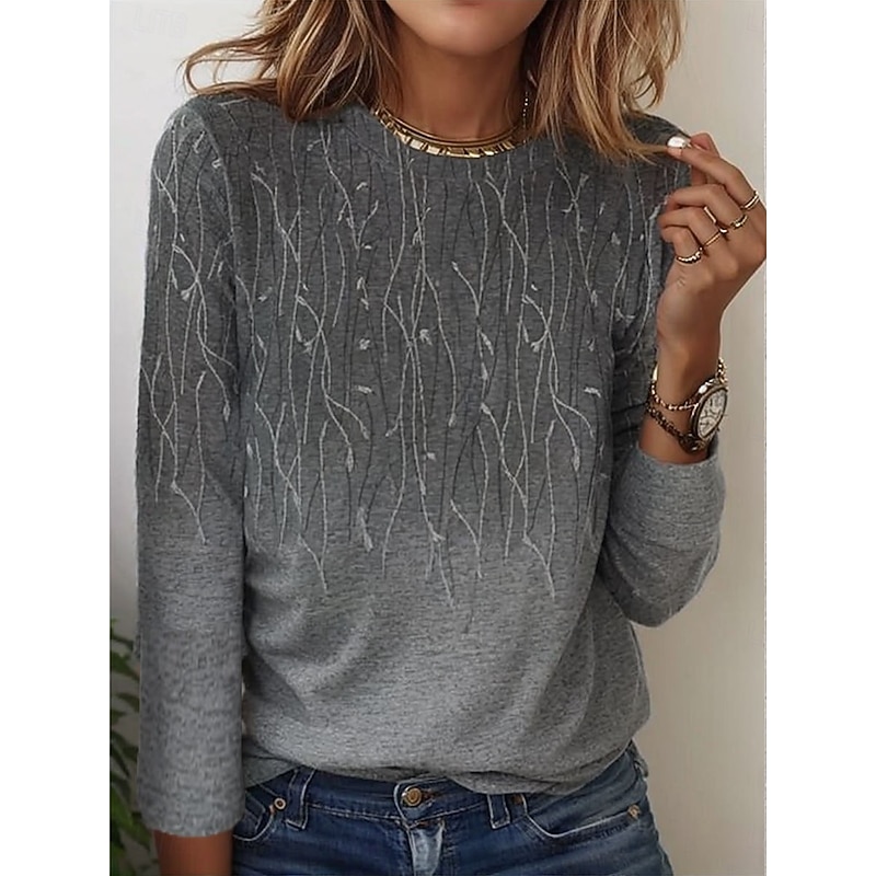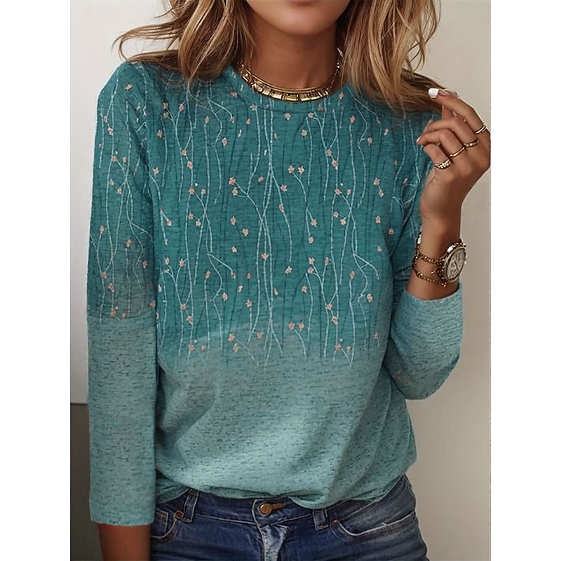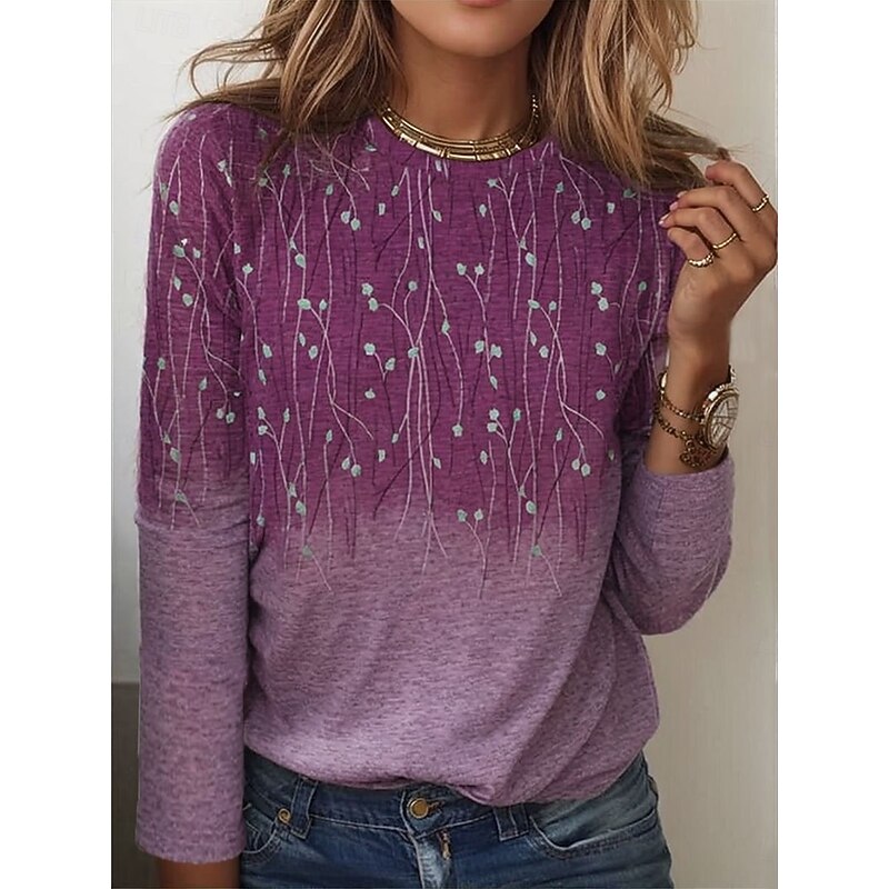 Women's T shirt Long Sleeve Crew Neck Long Sleeve Tunic Elegant Basic Floral Print Regular Tops Round Neck Holiday Weekend Blue Fuchsia Gray Light Blue Fall & Winter Prefall
