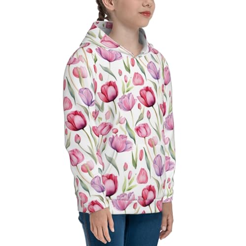 Tulip Flowers Watercolor Kid Hoodies Boys Sweatshirts Girls Pullover with Pocket