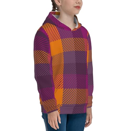 sizzling ! Purple Yellow Buffalo Plaid Kid Hoodies Boys Sweatshirts Girls Pullover with Pocket