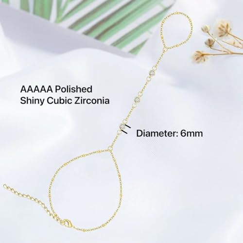 Hand Chain Bracelets for Women 14K Gold Dainty Trendy Cubic Zircon Finger Ring Bracelet Jewelry Accessories Gifts