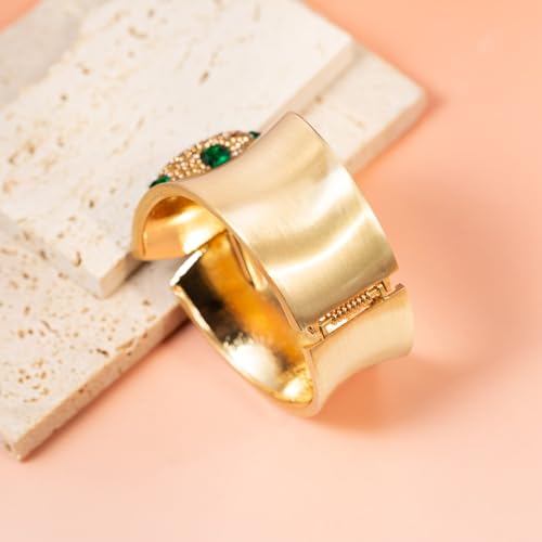 sizzling ! HZMAN Chunky Grren Crystal Cuff Bracelets for Women Retro Rhinestone Gold Plated Bracelet Wide Thick Open Hinge Wrist Cuff Bracelet Jewelry Gift