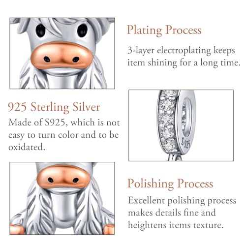 • Highland Cow Charm for Bracelets Material- Cow charm is made of 925 sterling silver,nickel-complimentary,lead-free,cadmium-free, and hypoallergenic. Suitable for long-term wear.
