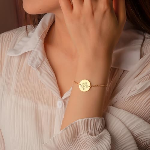 sizzling ! Anavia -Build Your Own Bouquet- Birthmonth Flower Bracelet, Personalized Handmade Floral Charm Bracelet, Customized Round Disc Birthday Gifts adore Jewelry for Her Mom Family Friends