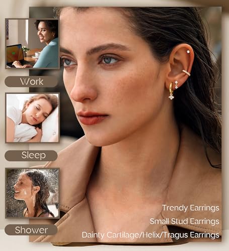 Material: Stainless SteelMetal type: Stainless SteelBack Finding: Screw BackEarring design: StudGem type: Cubic ZirconiaItem type name: Stud EarringsWarm Tips: This Product is Single Earring, Not Sold in PairsHypoallergenic Surgical Steel Earrings: Premium Genuine 316L Stainless Steel Earring, No Allergy, No Nickel Lead, Surgical Steel Earrings for Sensitive Ears Hypoallergenic, No Rust and No Tarnish. Long Lasting Color Retention, Shiny On Your Ears. Newly Upgrade Vacuum Plated with 14K Real Gold, Safer than Normal Electroplating. Won't Tarnished or Turn Green, Ensuring Comfortable Wearing ExperienceComfortable Flat Back Earrings: Upgraded Flatback Earrings with Internally Screw Thread Design, Safe and Not Easy to Fall Off or Lose, Convenient to Wear. Screw Back Earrings Remove the Pain and Hassle of Traditional Earrings, Without Stabbing Your Neck. Perfect for Wearing While Sleeping, Bathing or ExercisingEarring Sets for Multiple Piercing: These Stud and Hoop Earring for Multiple Piercing Including 21 Pcs Gold Flat Back Stud Earrings and 4 Pcs Hoop Earrings. Can Be Used as Cartilage Earring, Helix Piercing, Conch Piercing Jewelry, First Hole, Second Hole, Third Hole, Tragus Piercing,etc. We Offer 25Pcs Different Earrings Styles for Customers to Mix and Match for Layering. Go DIY and Show Off Your Creativity to Match Your StyleDainty Gold Earrings Set: Gauge:20G(0.8mm) Pin Thickness, Flat Back Size:5mm. Stud Earrings Post Length: 6mm, Hoop Earrings Inner Diameter: 10mm. Well Fitted and Stackable, sophisticated Small Cartilage Earrings Set, Create Many Different Looks for You and Get More ComplimentsPerfect Gift Choice: MultipacPerfect Gift Choice: Multipack Tiny Cartilage Earrings, Trendy, Classic, Dainty, Lightweight, Comfy Nap Earrings.This Flat Back Earrings Set are Sold Individully Not in Pairs. Come With a Danity Gift Box. Wonderful Gift for Your Friend or Family on Christmas, Birthday, Mother's Day, Graduation, Valentine's Day, New Year, Party, etc. Express Your most sincere love to themld Individully Not in Pairs. Come With a Danity Gift Box. Wonderful Gift for Your Friend or Family on Christmas, Birthday, Mother's Day, Graduation, Valentine's Day, New Year, Party, etc Perfect for everyday use. excellent materials and excellent craftsmanship ensure long-lasting durability.