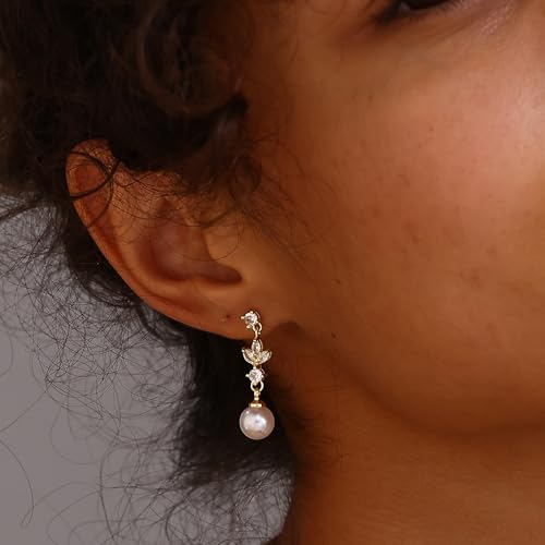 • Wedding Earrings:Introducing our stunning pearl drop earrings, a perfect blend between sparkling diamonds and vintage pearls! An off-white teardrop pearl hangs below glowing CZ leaf jewels in these classically made wedding earrings. With their vintage elegance and up-to-date style, these drop earrings effortlessly add a touch of timeless charm to any outfit, making you look and feel fabulous all day long