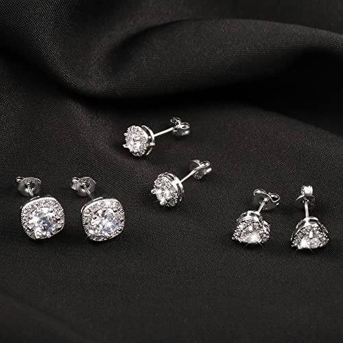 ALEXCRAFT Sterling Silver Stud Earrings for Women Girls Cubic Zirconia Halo Round Heart Square Diamond Large Silver Stud Set