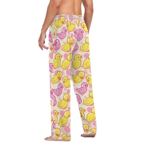 Men’s Yellow Pink Ducks Pajama Pants with Pockets, pleasant Lounge Sleep Bottoms#559