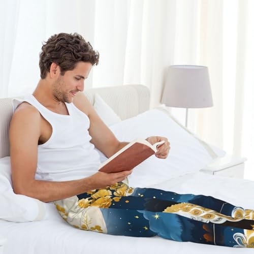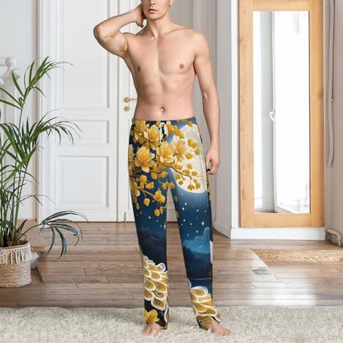 Moonlit Golden Tree Peacock For Men'S Lightweight Pajama Pants Adjustable Drawstring & Pockets each-Season Sleepwear