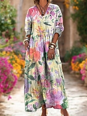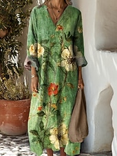 More information about Women's Midi Dress Shift Dress Vacation Casual Boho Going out Beach Loose Fit Floral Graphic Long Sleeve V Neck Yellow Pink Blue Green Spring Fall Winter