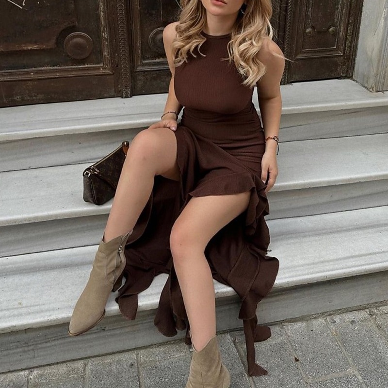 This Women's Midi Dress Boho Dress Western Dress Fashion latest Outdoor Vacation Holiday Regular Fit Plain Sleeveless Crew Neck Black Blue Brown Summer combines elegant design with practical functionality. Every detail has been carefully considered to ensure you get the best possible experience. The premium construction means this product will serve you well for years to come.