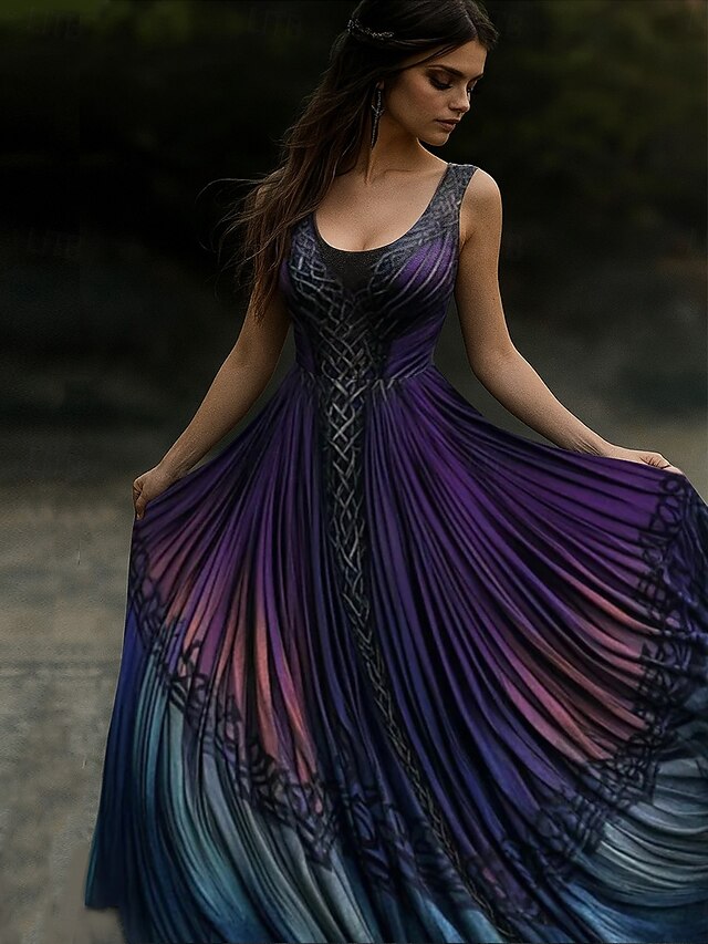 More information about Women's Vintage Viking Celtic Knot Gradient Art Maxi Dress Sundress A Line Dress Slip Dress Pleated Dress Vacation Casual Boho Beach Standard Fit Graphic Abstract Sleeveless U Neck