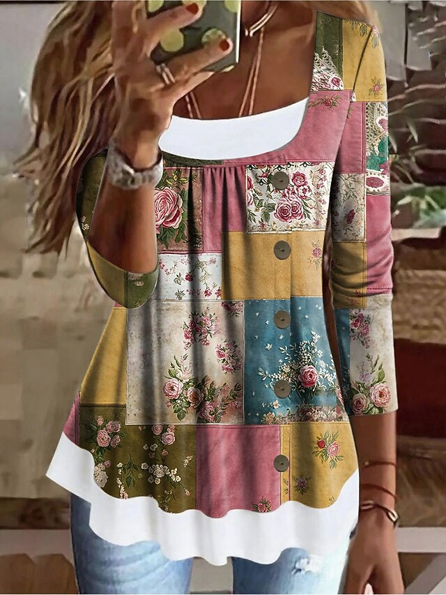 This Women's T Shirt Floral Graphic Vintage contemporary Classic Long Sleeve Square Neck Long Tops Daily Weekend Patchwork Buttons Print Red Blue Purple Green Spring Fall Winter combines elegant design with practical functionality. Every detail has been carefully considered to ensure you get the best possible experience. The premium construction means this product will serve you well for years to come.