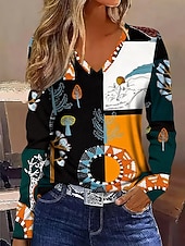 More information about Women's T Shirt Floral Graphic Geometric Vintage sleek iconic Long Sleeve V Neck Regular Tops Daily Print Orange Spring Fall Winter