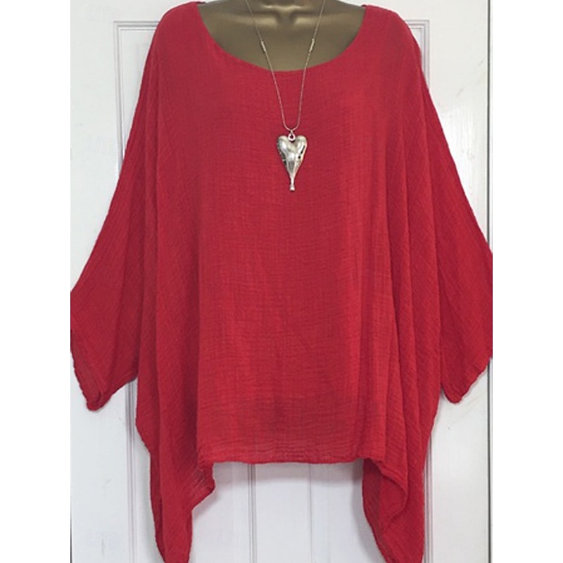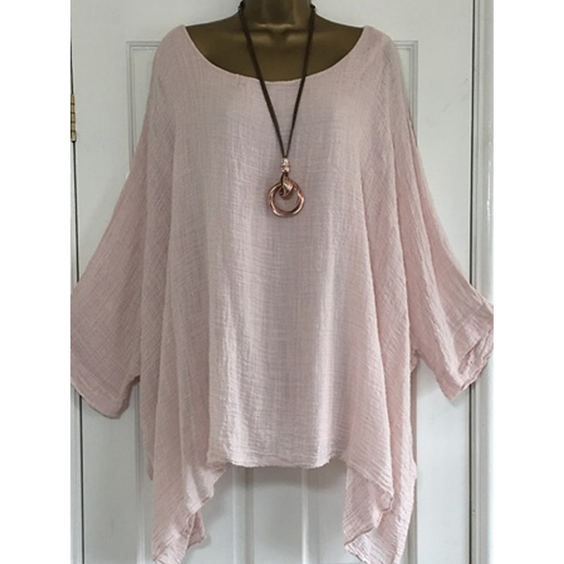sizzling ! Women's Blouse Plain Basic Casual Linen enjoy 3/4 Length Sleeve Boat Neck Regular Tops Daily White Pink Red Gray Summer