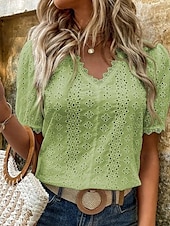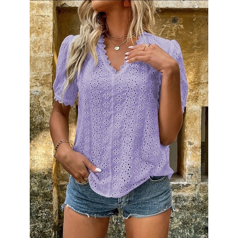 This Women's Shirt Blouse Solid Color modern Casual Short Sleeve V Neck Regular Tops Daily Lace Black White Pink Purple Orange Summer combines elegant design with practical functionality. Every detail has been carefully considered to ensure you get the best possible experience. The premium construction means this product will serve you well for years to come.