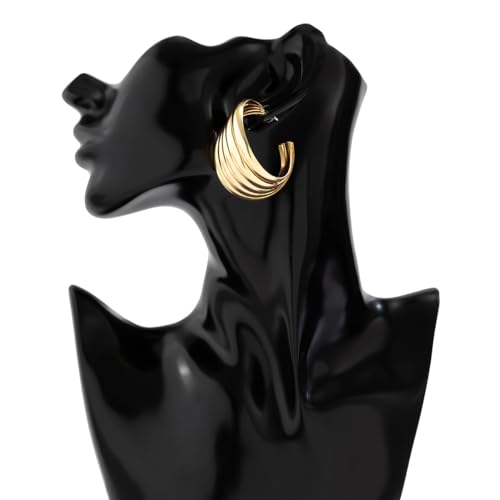 sizzling ! Gold Chunky Statement Earring for Prom Party,Oversized Exaggerated Dangle Earrings for Formal Evening Dress,Metal Thick Hoop Earrings for Women