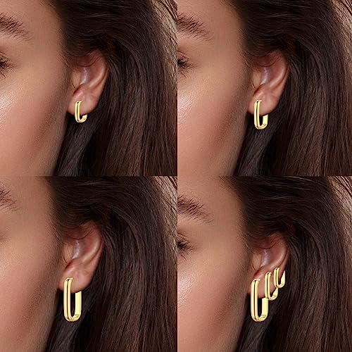 Material: Yellow GoldMetal type: Yellow GoldBack Finding: Hinged HoopEarring design: HoopGem type: No Gemstone14K Gold Material: Our gold hoop earrings use 14K gold plating on the surface and 925 sterling silver of pillars. What’s more, for ensuring your security and durable wearing, our earrings are hypoallergenic which are lead-free and nickel-freeMultiple Sizes: We have three different sizes which are 5.5 in, 7 in and 9 in length with same wide of 7 in. You can wear them together or separate to match various wearing and occasionFashion Design: The design of these earrings are fashion and simple, but too simple, too charming, which can be matched with any wearing and jewelry. What’s more, the special design of these gold huggie earrings are squareEasy to Wear: These Hoop Earrings for Women are designed to be easy to put on and take off, so you can quickly and easily change your look. They are also secure, so you don't have to worry about them falling off during the dayDurable and long-lasting: Made to withstand the test of time, these gold hoop earrings are designed to be both sturdy and long-lasting, ensuring that you'll be able to enjoy them for years to comeGreat value for money: Offering three pairs of earrings in one set, this Gold Hoop Earrings Set for Women provides exceptional value for money, making it the ideal choice for anyone looking to add some stylish and versatile jewelry to their collection Perfect for everyday use. excellent materials and excellent craftsmanship ensure long-lasting durability.
