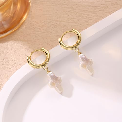 Cross Heart Pearl Drop Dangle Earrings For Women Baroque Freshwater Hoop Star 14k Gold Dangling Dainty Trendy Jewelry
